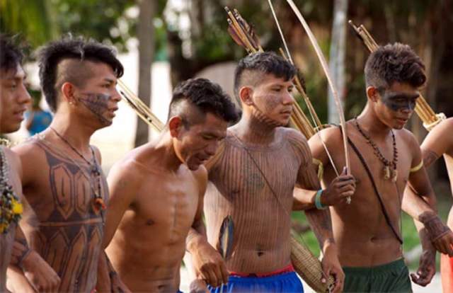 Dancing Munduruku warriors.(Photo: Mauricio Torres)