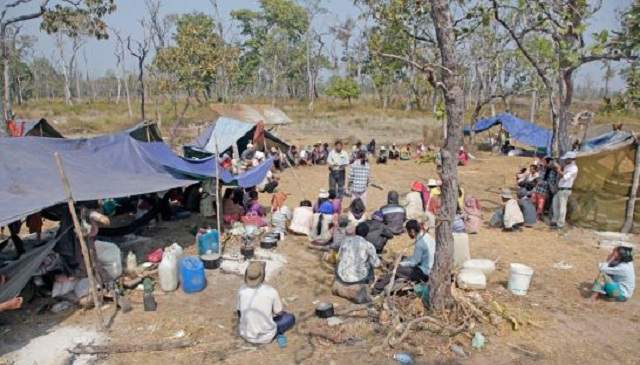 Ethnic Kuoy villagers gather at their camp in Preah Vihear last year for a meeting to discuss the protection of their community forests from companies trying to develop the area. (Photo: Heng Chivoan)