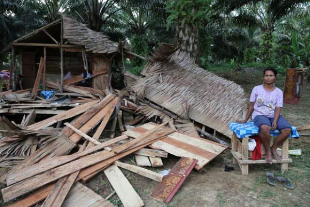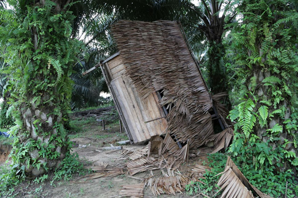 Basron told Mongabay-Indonesia that the thugs and company personnel were armed with sharp weapons such as knives, axes and machetes, while military and police carried firearms. They had driven to the hamlet in dozens of Mitsubishi pickup trucks, also bringing heavy equipment including an excavator, which they used to destroy the homes.