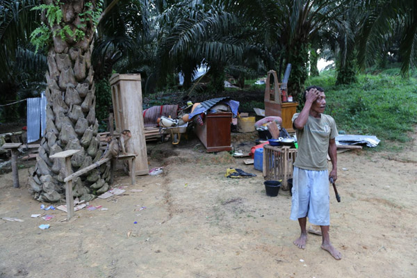Basron said they also looted his livestock, taking away a chicken and several other birds worth Rp 600,000 ($50). Other Pinang Tinggi residents also reported members of the eviction team stealing livestock, cash and other valuables.
