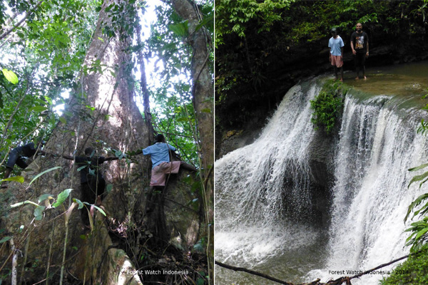 (Left) Merbau tree on Kobror island in West Aru District; (Right) Jeramani waterfall on the Kudarimar river in the Central District of Aru. Photos courtesy of Forest Watch Indonesia