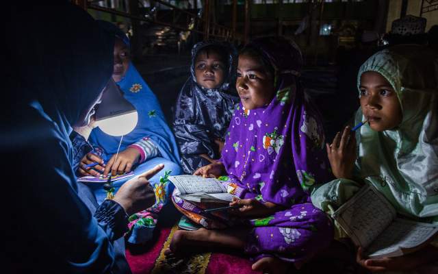 Children read the Quran at a temporary shelter after the tsunami and earthquake in Palu, Indonesia, on Oct. 9. (Ulet Ifansasti/Getty Images)