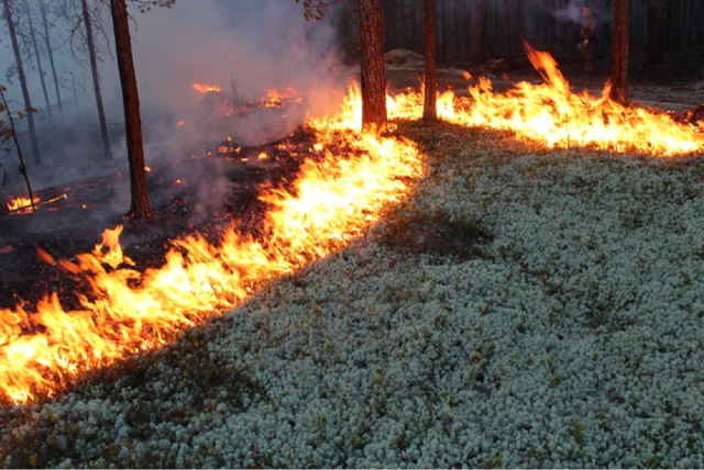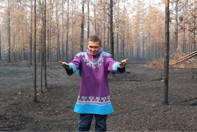 Fire destroys a Khanty reindeer moss pasture. (Photo: Aleksandr Aypin for 350.org)