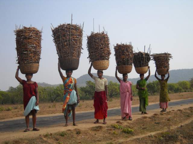 The Bhumia tribal community practices sustainable forestry: these women returning from the forest carry baskets of painstakingly gathered tree bark and dried cow dung for manure. (Photo: Manipadma Jena / IPS)
