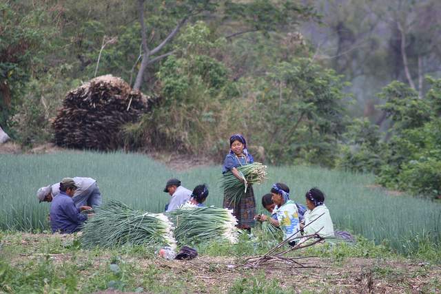 Indigenous farmers harvesting onions outside Panajachel (Photo: Magnus Franklin)