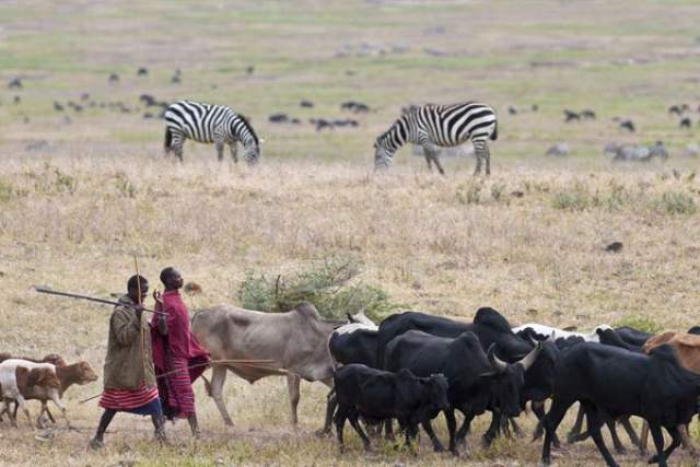 Tanzanian herders in the Ngorongoro Crater in Arusha. The country has withdrawn a hunting concession for the Dubai royal family. FILE PHOTO | AFP