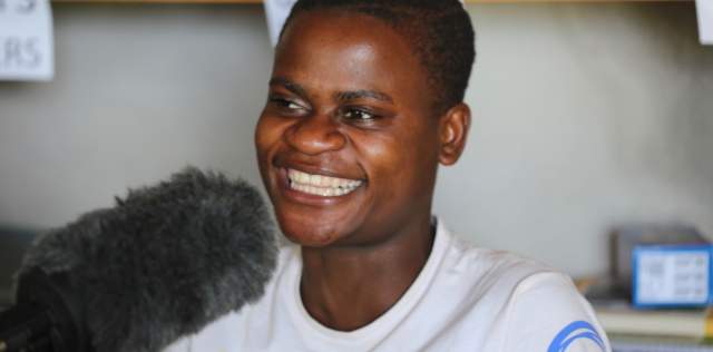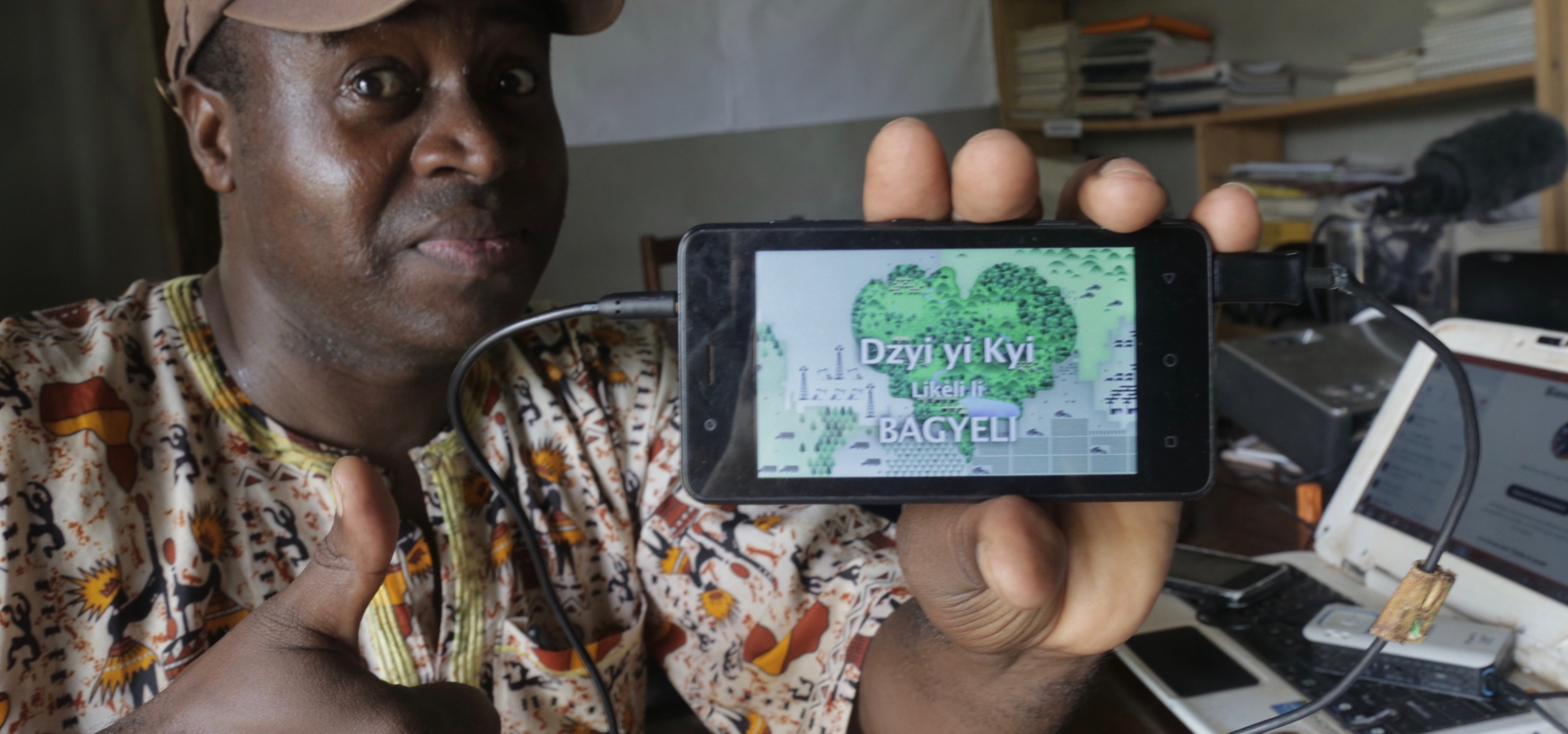 Ade, Baka youth dubbing Territories of Life films into Baka language.