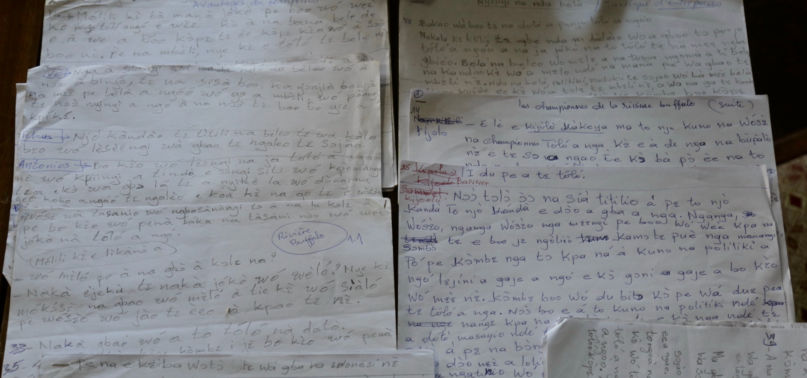 A large group of Baka and Bagyeli people took part in the translation and dubbing work, with representatives from all dialect areas. The translation took the group around 2 weeks and involved numerous deep discussions about the nuance and deeper meaning of hundreds of words such as ‘development’, ‘self-determination’ and ‘territory’. Baka language is rarely written down and most of the translators had limited experience of writing or reading in their language. Using the International Phonetic Alphabet as well as a 1,000 page Baka to French dictionary that had been the life work of French missionary, Robert Brisson, they were able to succeed. Each translator painstakingly hand wrote each script which was then typed up using a software for International Phonetic Script.
