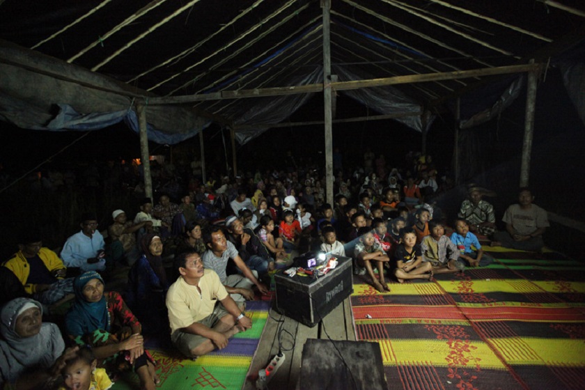 A community in Senyerang, Indonesia watches the Territories of Life series. (Photo: of LifeMosaic)