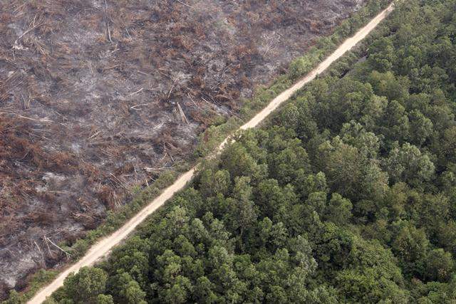 Plantations around Riau, Indonesia, owned by Asia Pacific Resources International Holdings Ltd. (APRIL) and Asia Pulp and Paper (APP). (Photo: Greenpeace / Vinai Dithajohn)