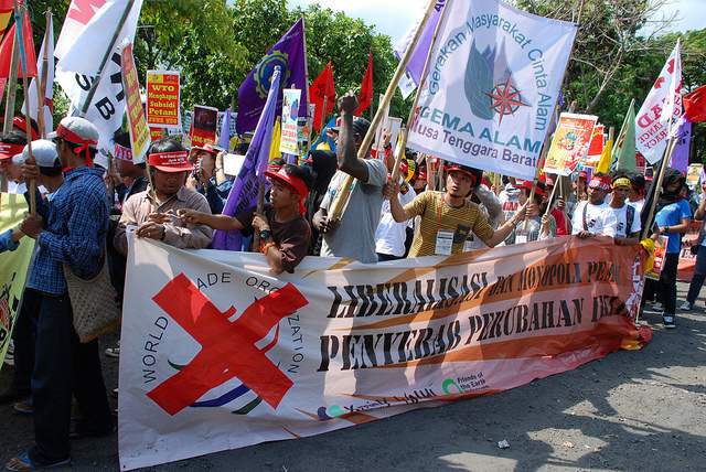 Several WTO Ministerials, such as the Doha Development Round in 2001, collapsed due to continuing disagreements over subsidies on agricultural products, market access, and special safeguard mechanisms, and massive Peoples’ protests. In its 9th Ministerial Conference, the WTO will make decisions on any of the multilateral trade related agreements such as the Agreement on Agriculture (AoA), Trade Related Aspects of Intellectual Property Rights (TRIPS), Trade Related Investment Measures (TRIMS), and General Agreement on Trade in Services (GATS), and forge new multilateral agreements. The proposed agreement for the MC9 called the Bali Package will push for greater liberalization in agriculture, acceleration of LDCs in the WTO, and expedite trade facilitation through restructuring of GATT articles on imports-exports and trade costs. The Bali Package, along with post-Bali issues on International Technology Agreement (ITA) and Trade in Services Agreement (TISA), are labeled by developed countries as the solution to the stalled Doha Round to pursue intensified trade liberalization.