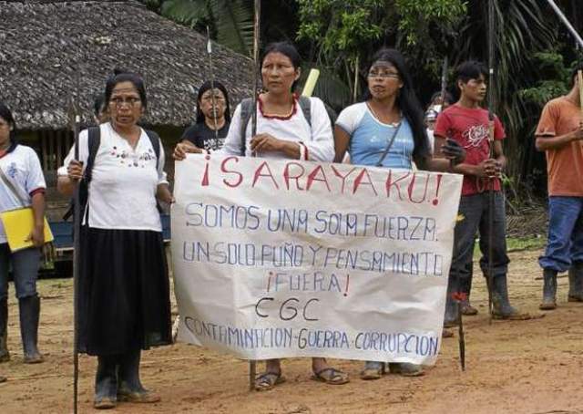 Las 135 000 hectáreas del pueblo de Sarayaku fueron reconocidas en 1992, en el gobierno de Rodrigo Borja, tras una masiva movilización de indígenas que llegaron hasta la capital después de cerca de un mes de marchas. Ese mismo año se otorgó la licencia para la exploración petrolera en la zona, sin una consulta previa a sus habitantes.