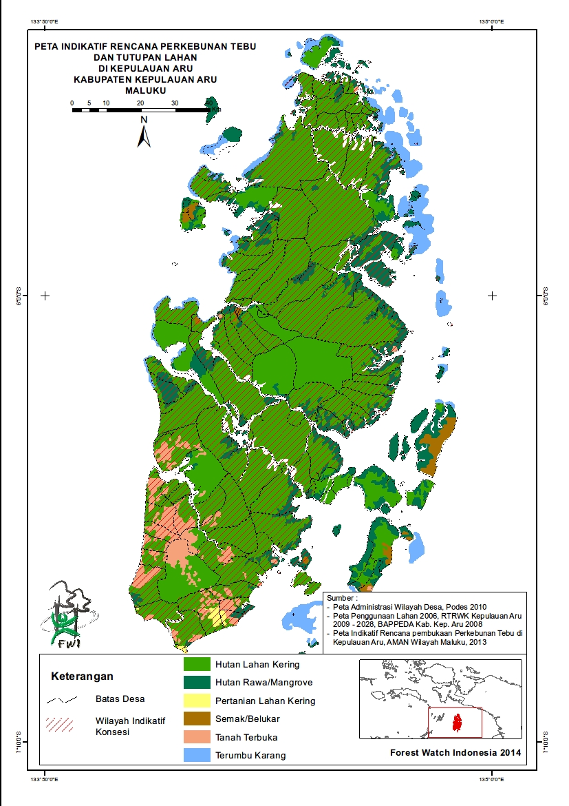 Dokumen dan kronologis hutan Kepulauan Aru menjadi kebun tebu bisa dilihat di sini.