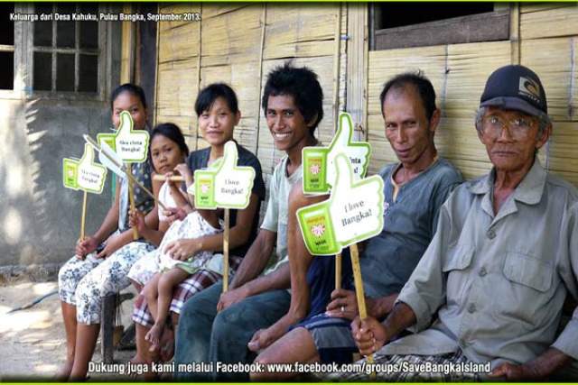Warga desa di Pulau Bangka, ikut kampanye selamatkan Bangka, dari pertambangan. Mereka tak ingin ruang hidup mereka rusak. (Foto: dari Facebook Save Bangka)