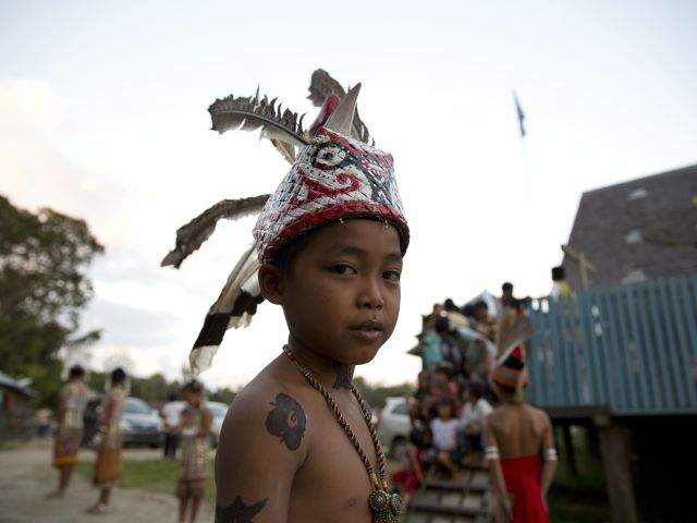 Anak Dayak dalam tarian penyambutan pelatihan kepemimpinan di Sungai Utik. Foto: LifeMosaic