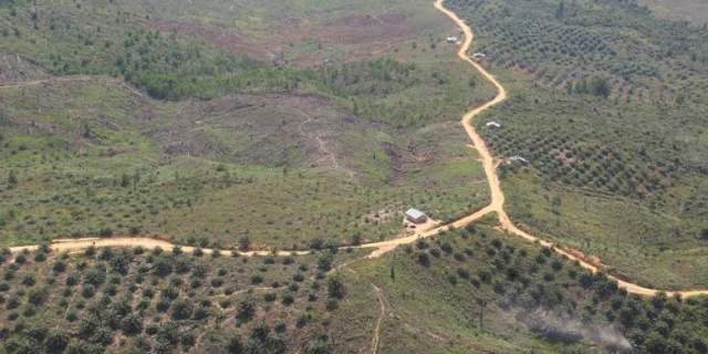 Hamparan kebun sawit di kawasan Taman Nasional Tesso Nilo, Riau (Foto: Kompas/Syahnan Rangkuti).